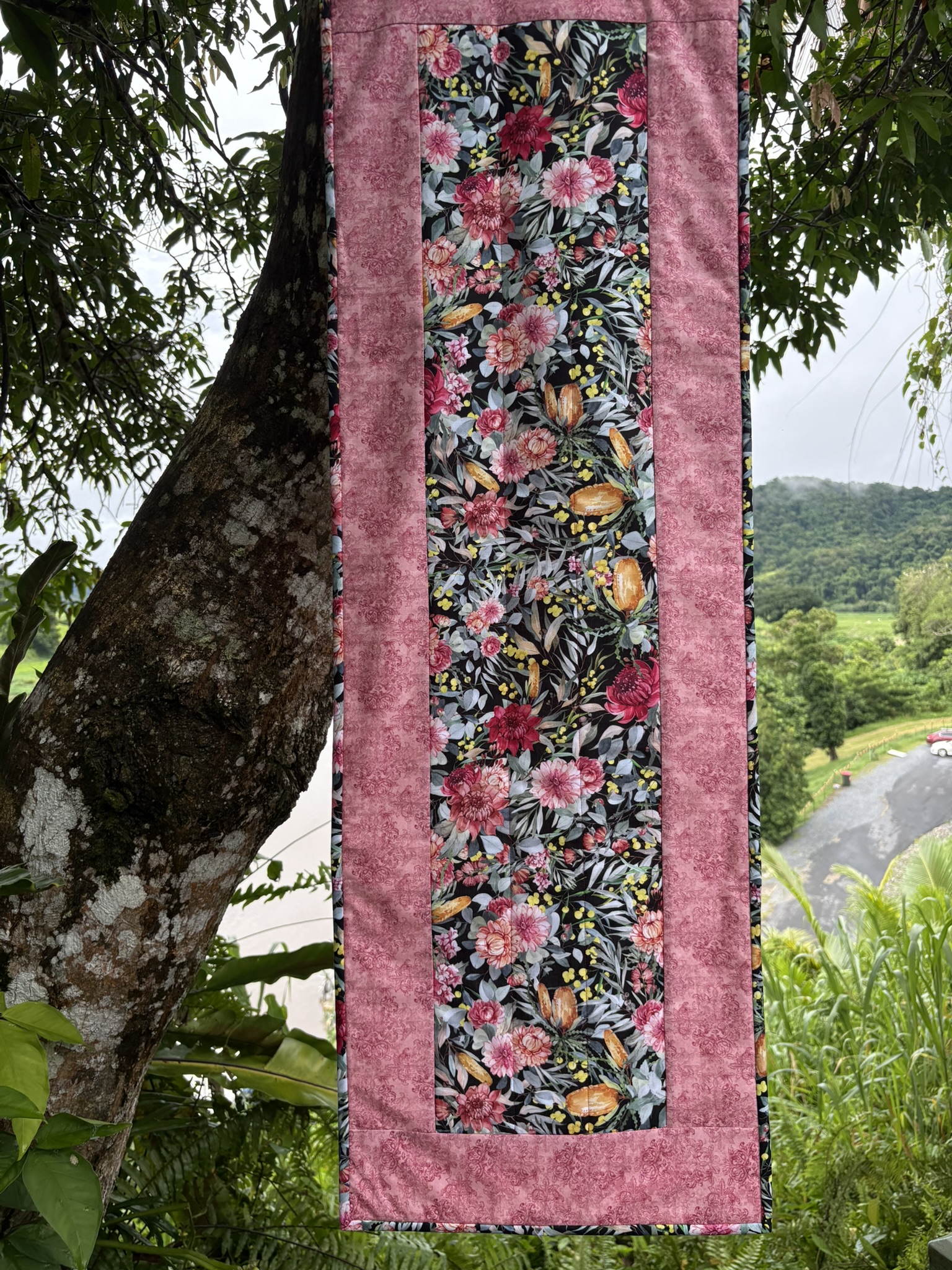 Wild Flowers Pink Edge Table Runner